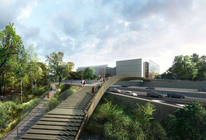 Cette politique d’aménagement est illustrée par l’image ci-dessous, une des rares compositions architecturale qui traverse le périphérique à la porte de Vincennes. L’architecte Bailleau imagine un système symétrique qui traverse les deux côtés de la ville.