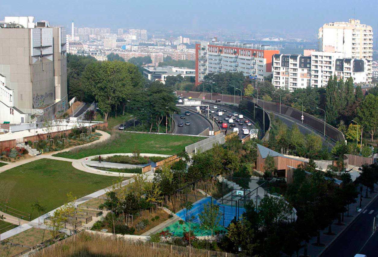 Le projet d’aménagement du secteur n° 7 de la ceinture verte de Paris, de la porte de Pantin à la porte des Lilas est une des images fortes de cette politique d’aménagement du plan Lafaye (voir ci-dessous). Nous y voyons à la fois les HBM construites dans l’entre-deux-guerres, le parc d’Azema, dit du Chapeau Rouge, puis ces grandes barres qui sont implantées. C’est comme si une ville nouvelle annulaire avec tous ses clichés avait été créée à cinq kilomètres du centre historique de Paris (rappelons que le boulevard périphérique de Londres est à 30 km, celui de Berlin à 25, celui de Madrid à 10. Dans l’entre-deux-guerres, l’incapacité politique et financière de la ville de Paris à réaliser les terrains de jeux, qui n’auraient pas pu être transformés en autoroutes ou en grands ensembles, permet cette irruption d’une logique d’urbanisme de très grande banlieue dans la capitale.