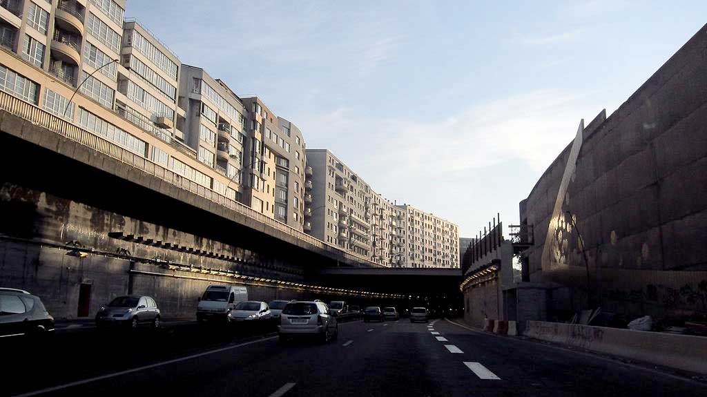 Souterrains sous un sixième de sa longueur, le périphérique est une frontière matérielle. Sur le reste de son tracé, il passe en tranchée non couverte ou au niveau du sol ou en viaduc au dessus de la ville sur un tiers de sa longueur.