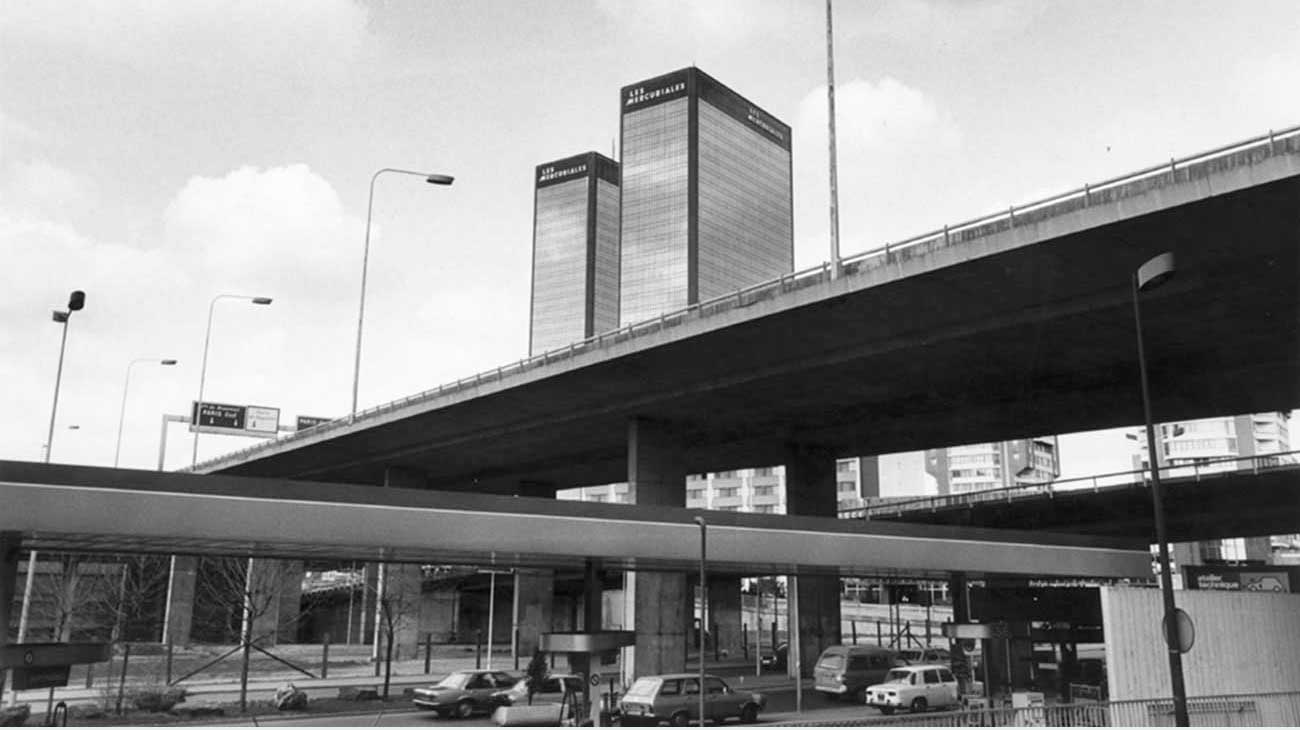 au 1er mars 1961, montre le front bâti des HBM, le système des espaces verts réalisés et le boulevard périphérique désormais en tranchées et autoroutier, qui occupe la limite du périmètre communal de Paris.