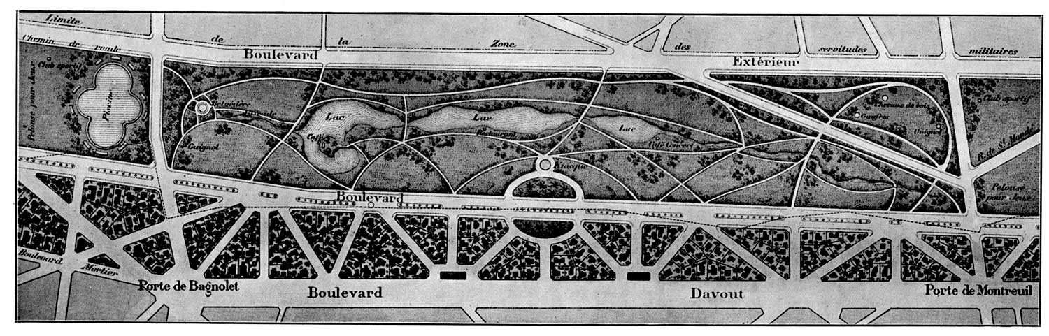 Vers 1850, Napoléon III, revenu de son exil londonien, veut pour Paris une promenade qui surpasse les fameux parcs anglais, Alphand constitue alors une équipe composée d’architectes sous la direction de Davioud et de paysagistes sous celle de Barillet-Deschamps, qui lui donneront ses lettres de noblesse.
