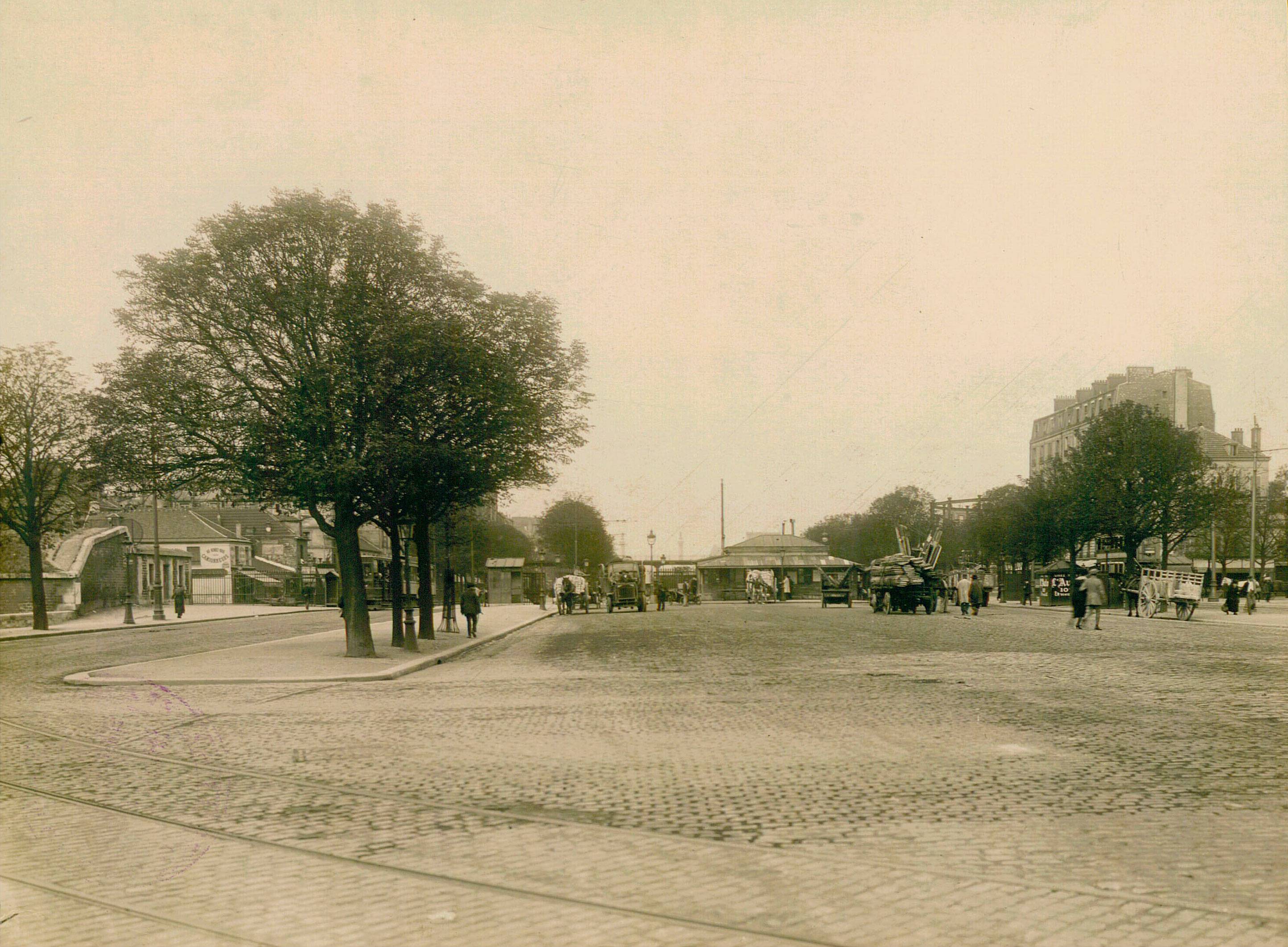 01-Porte de Bercy, vers Paris (XIIe), à gauche la seine et le pont national, en face, le chemin de fer de ceinture a été remplacé par le tramway, à droite, l’enceinte existe toujours
