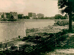 10-Bercy, vue prise depuis l’est du bastion n° 3 vers l’intérieur de Paris (XIIe), à gauche, le cimetière Valmy, vers banlieue